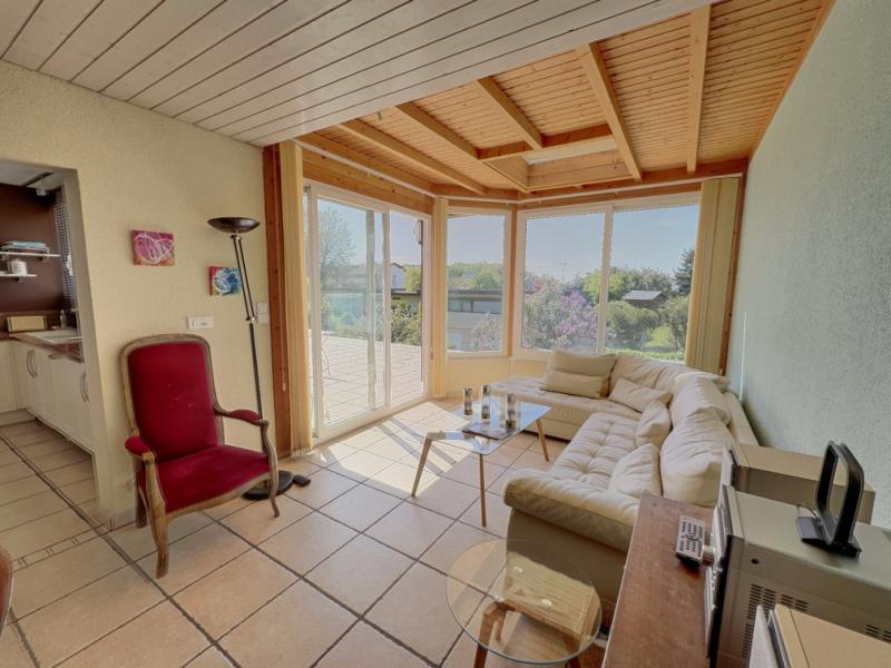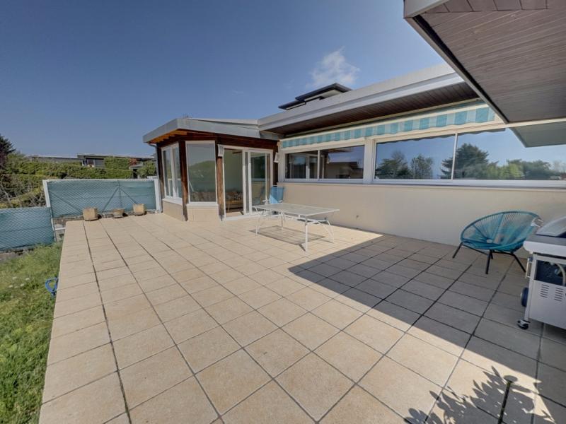 EXCLUSIVITÉ THONON:<br> Sur la commune de THONON, au calme, proche de l'hôpital et à deux pas du contournement, maison mitoyenne de plain-pied, de 90 m2 comprenant trois chambres, une grande pièce de vie avec un accès direct sur une terrasse de 50 m2, cuisine équipée.<br> Sous-sol complet avec 4 caves et grand garage de 40 m2.<br> Les informations sur les risques auxquels ce bien est exposé sont disponibles sur le site Géorisques : http://www.georisques.gouv.fr.